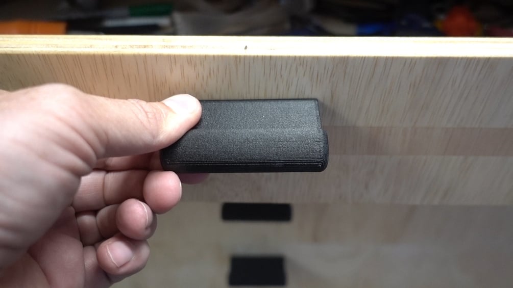 I created these drawer pulls and the template for the bolts in Fusion 360. They work quite well. You get both versions - the one that is taller than the other, and both versions of the jig. Cool.